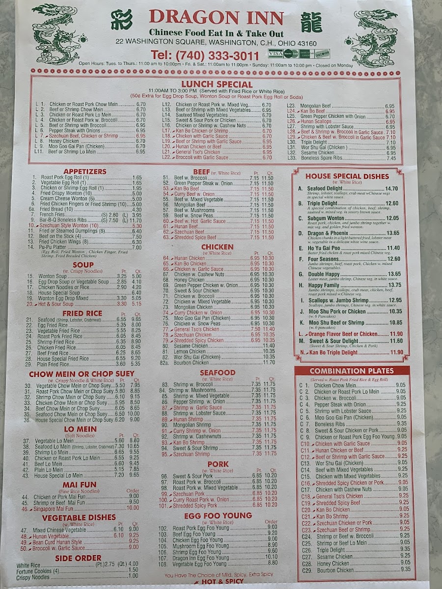 Welcome to Dragon Inn, a gem located at 22 Washington Square in Washington Court House, Ohio. This establishment promises a culinary experience that tantalizes the taste buds and embraces the local dining scene. With just a phone call away at +1 740-333-3011, a delightful feast is always within reach.